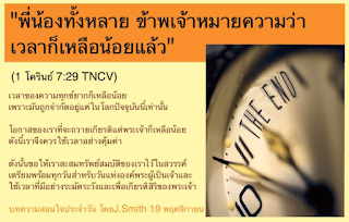 "พี่น้องทั้งหลาย ข้าพเจ้าหมายความว่าเวลาก็เหลื
